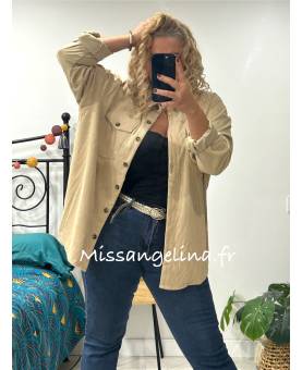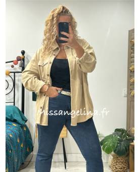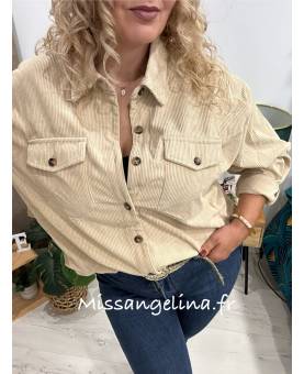 Chemise/surchemise en velours côtelé coupe oversize et de couleurs beige.