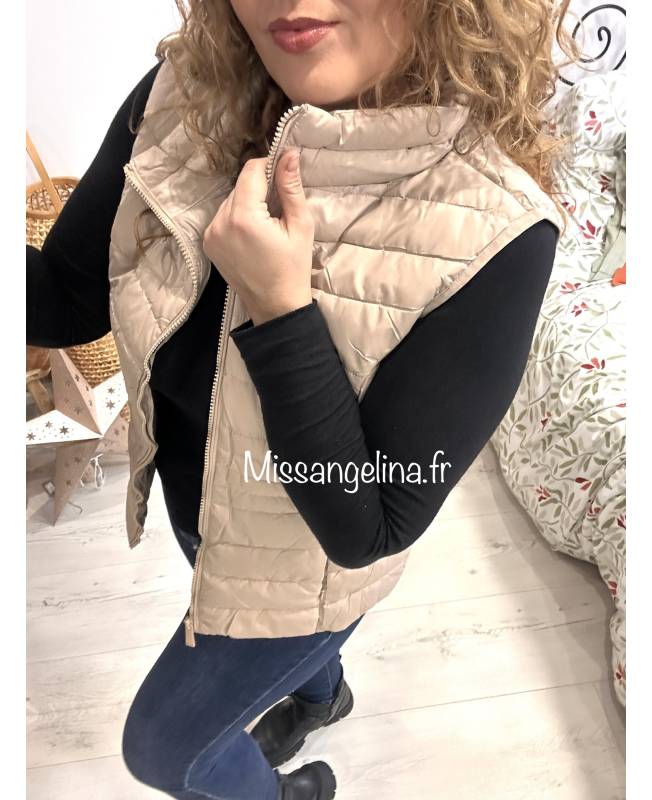 DOUDOUNE MATELASSEE SANS MANCHE BEIGE;